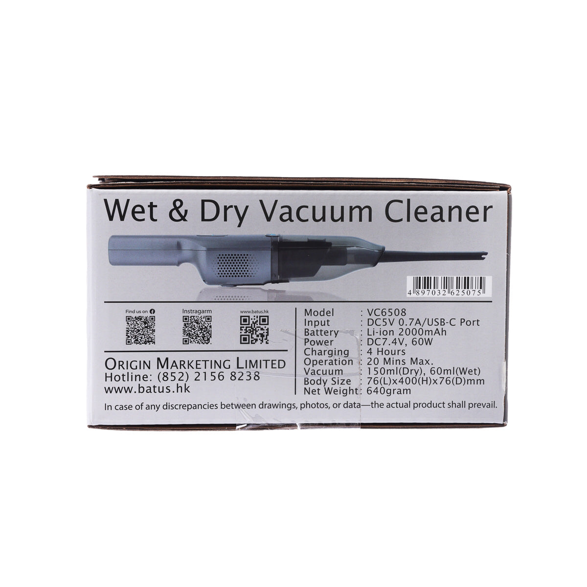 BATUS Cordless Wet & Dry Vacuum Cleaner-VC6508