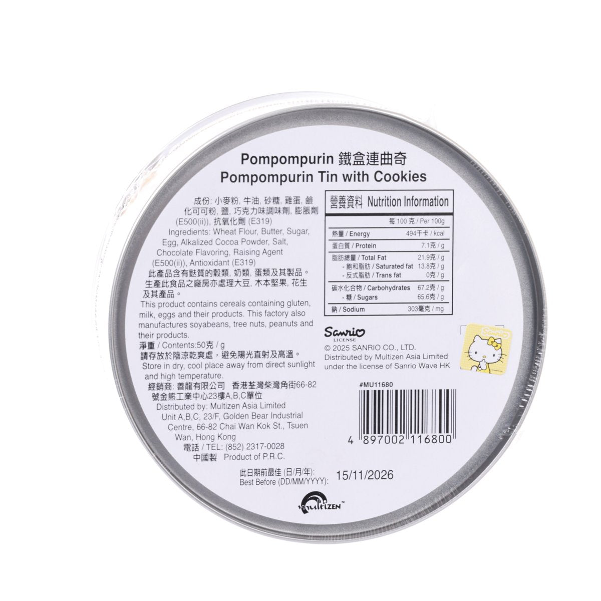 MULTIZEN Sanrio Embossed Chocolate Cookie Circle Tin (Hello Kitty & Pompompurin) (50g)