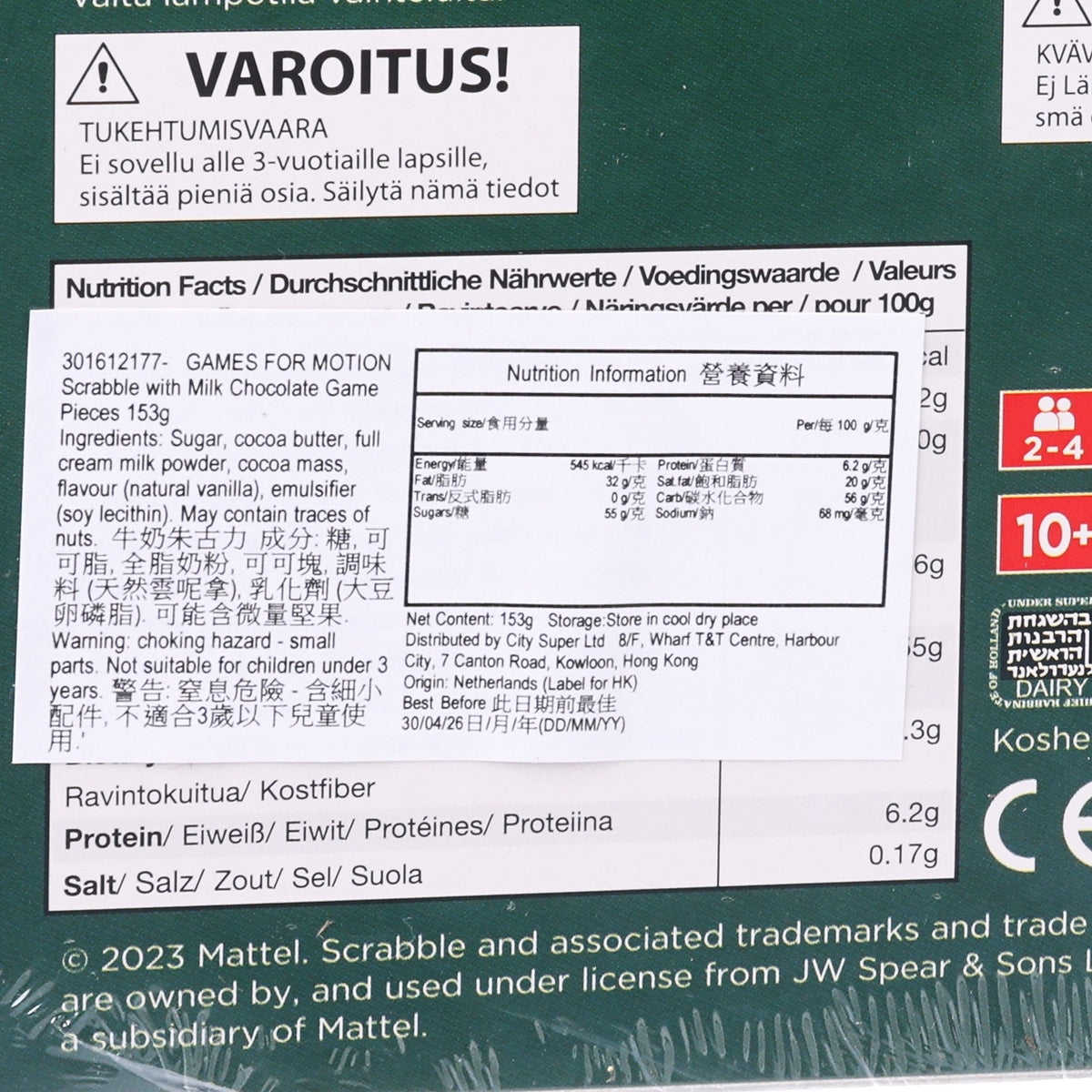 GAMES FOR MOTION Scrabble with Milk Chocolate Game Pieces (153g)