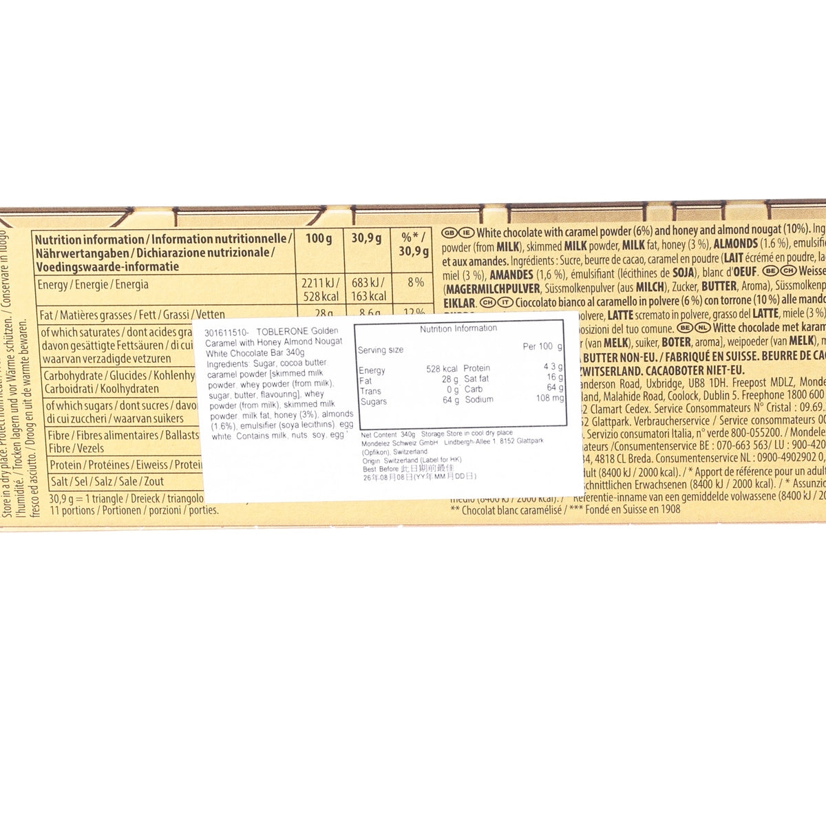 TOBLERONE Golden Caramel with Honey Almond Nougat White Chocolate Bar  (340g)