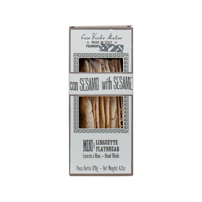 CASA VECCHIO MULINO, as expert craftsmen of savoury snacks, has been making the crispy and thin Mini Linguette Flatbread by hand in Turin, Italy since 1860. Selecting only the highest quality ingredients, using the slow and natural leavening, and the production process is done by hand, final with a slow, gently bake to create its crispy and golden product. This sesame flatbread is perfect to be part of cheese platter, or serving with soft cheeses or fresh tomatoes.