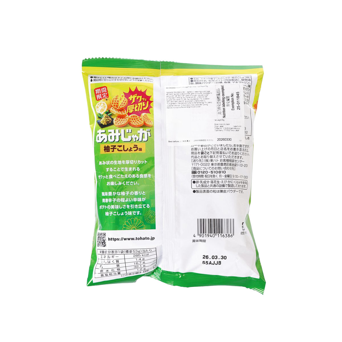 TOHATO Amijyaga Potato Chips - Yuzu Pepper  (53g)