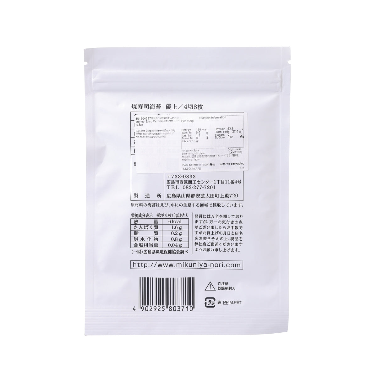 MIKUNIYA Roasted Sushi Nori Seaweed - Yujo (Superior Grade) - 1/4 Cut (8pcs)