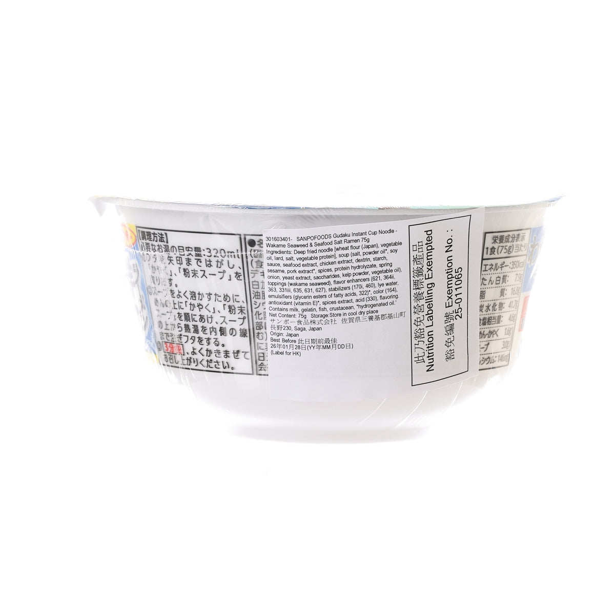 SANPOFOODS Gudaku Instant Cup Noodle - Wakame Seaweed & Seafood Salt Ramen (75g)