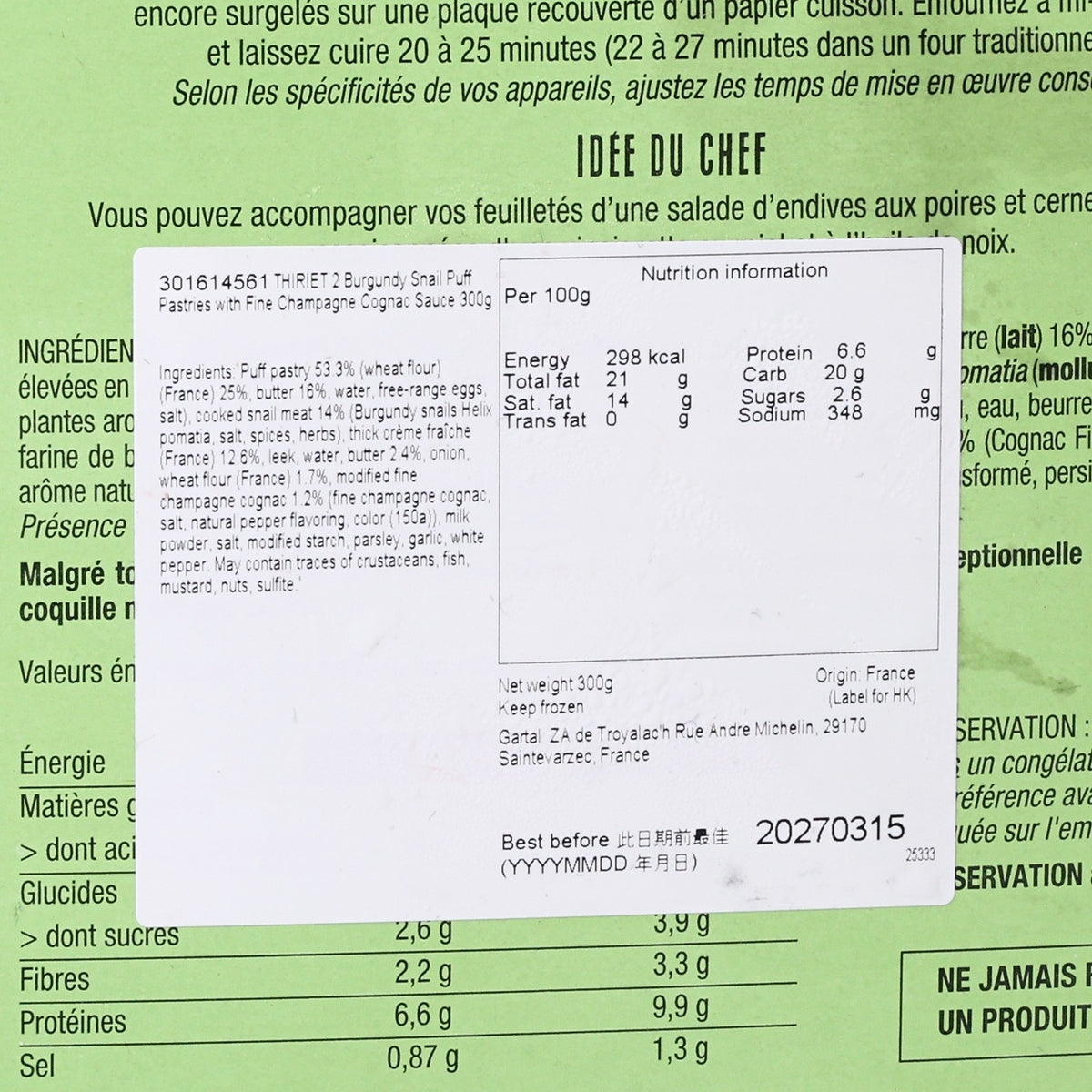 THIRIET 2 Burgundy Snail Puff Pastries with Fine Champagne Cognac Sauce (300g)