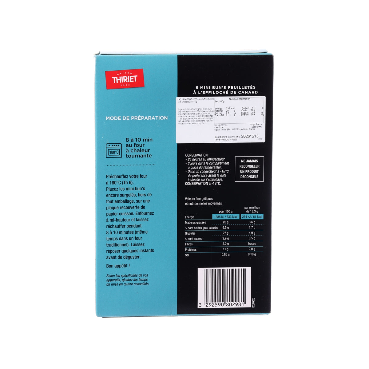 THIRIET 6 Mini Puff Pastry Buns with Shredded Duck (110g)