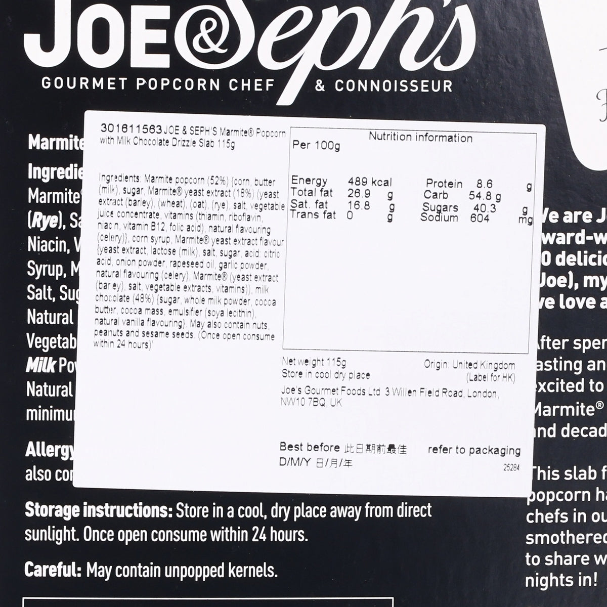 JOE & SEPH'S Marmite® Popcorn with Milk Chocolate Drizzle Slab (115g)