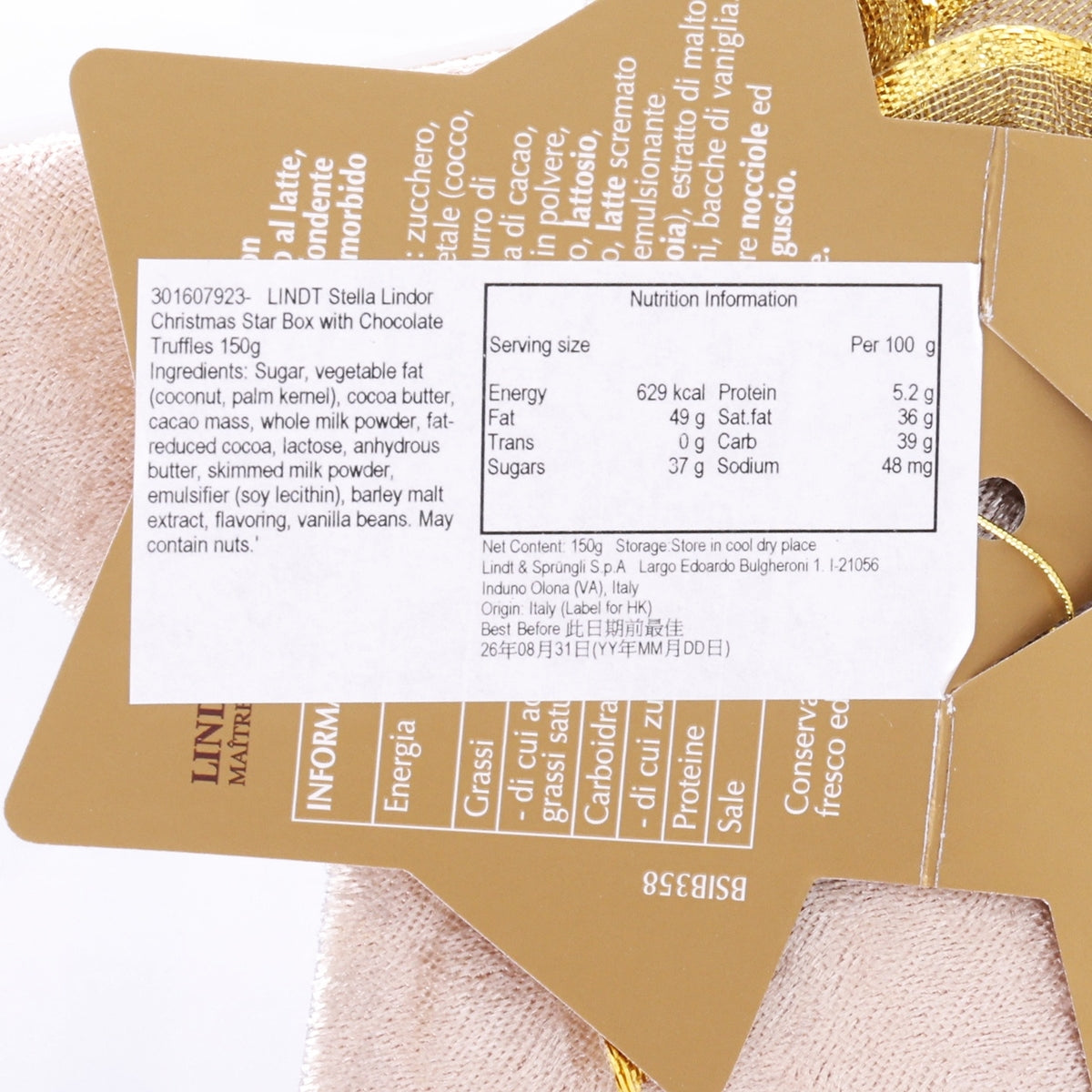 LINDT Stella Lindor Christmas Star Box with Chocolate Truffles (150g)