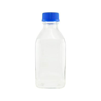 This Square Clear Bottle has a space saving shape compared to traditional round bottles. It is moulded from high-purity, clear borosilicate glass, renowned for its excellent thermal performance, and high resistance to chemical attack. With an easy-to-read graduated volume scale, it is ideal to be a drink container, in addition to experimental use. It is supplied complete with iconic blue polypropylene cap and drip-free pouring ring for use up to 140 °C.