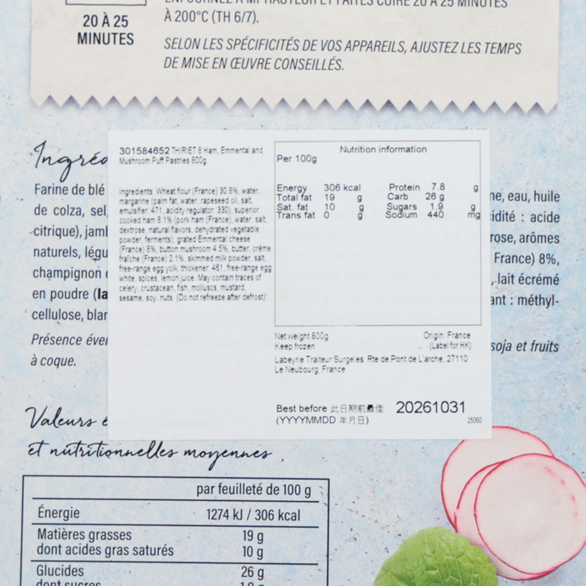 THIRIET 8 Ham, Emmental and Mushroom Puff Pastries (800g)