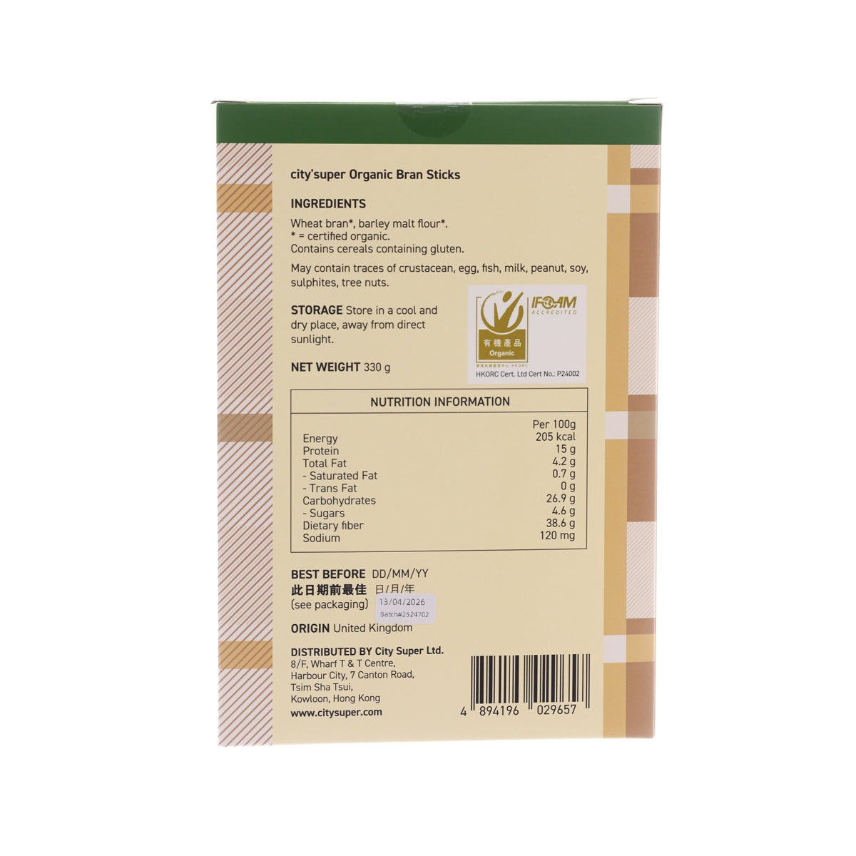 CITYSUPER Organic Bran Sticks (330g)