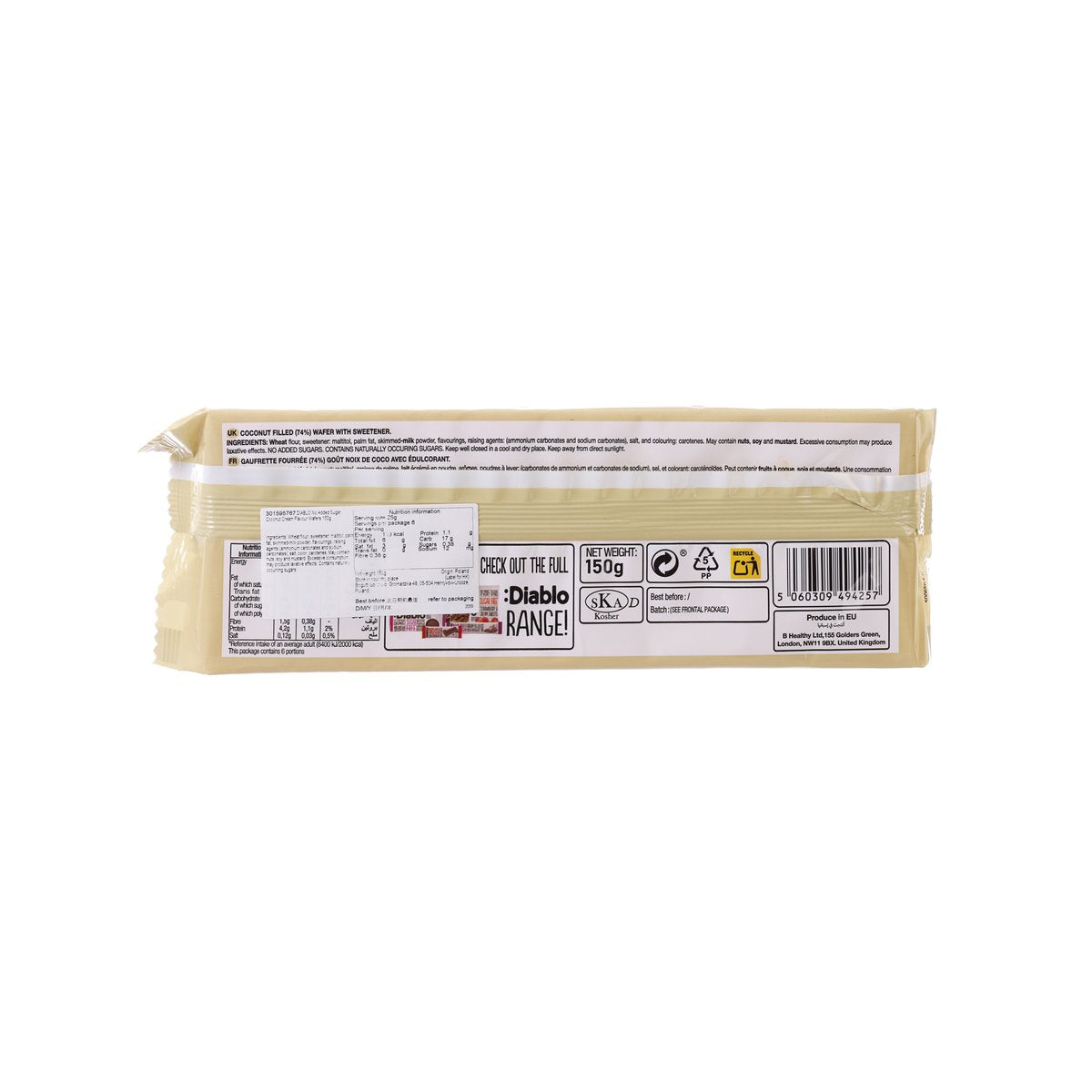 DIABLO No Added Sugar Coconut Cream Flavour Wafers (150g)