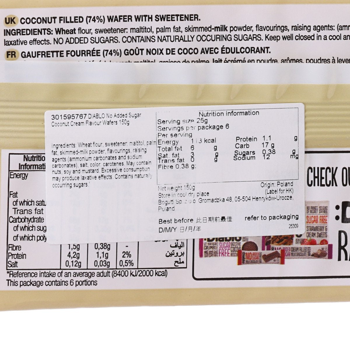 DIABLO No Added Sugar Coconut Cream Flavour Wafers  (150g)