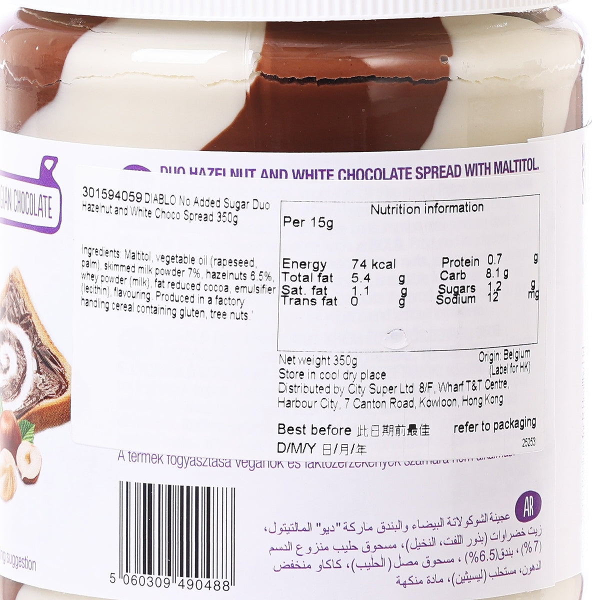 DIABLO No Added Sugar Duo Hazelnut and White Choco Spread (350g)