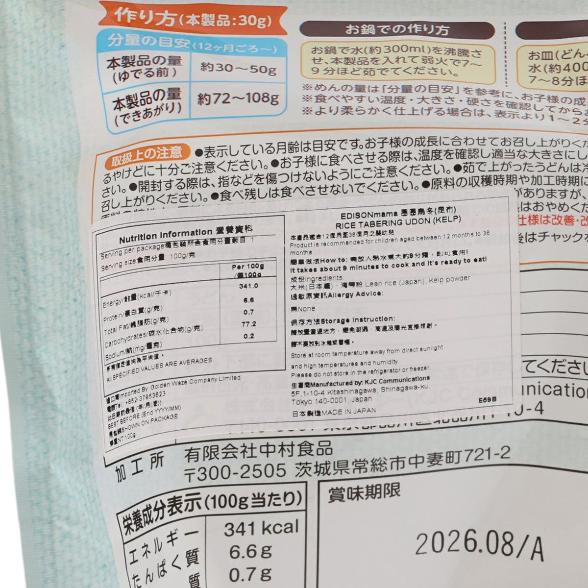 EDISON MAMA Rice Tabering Udon (Kelp)  (100g)