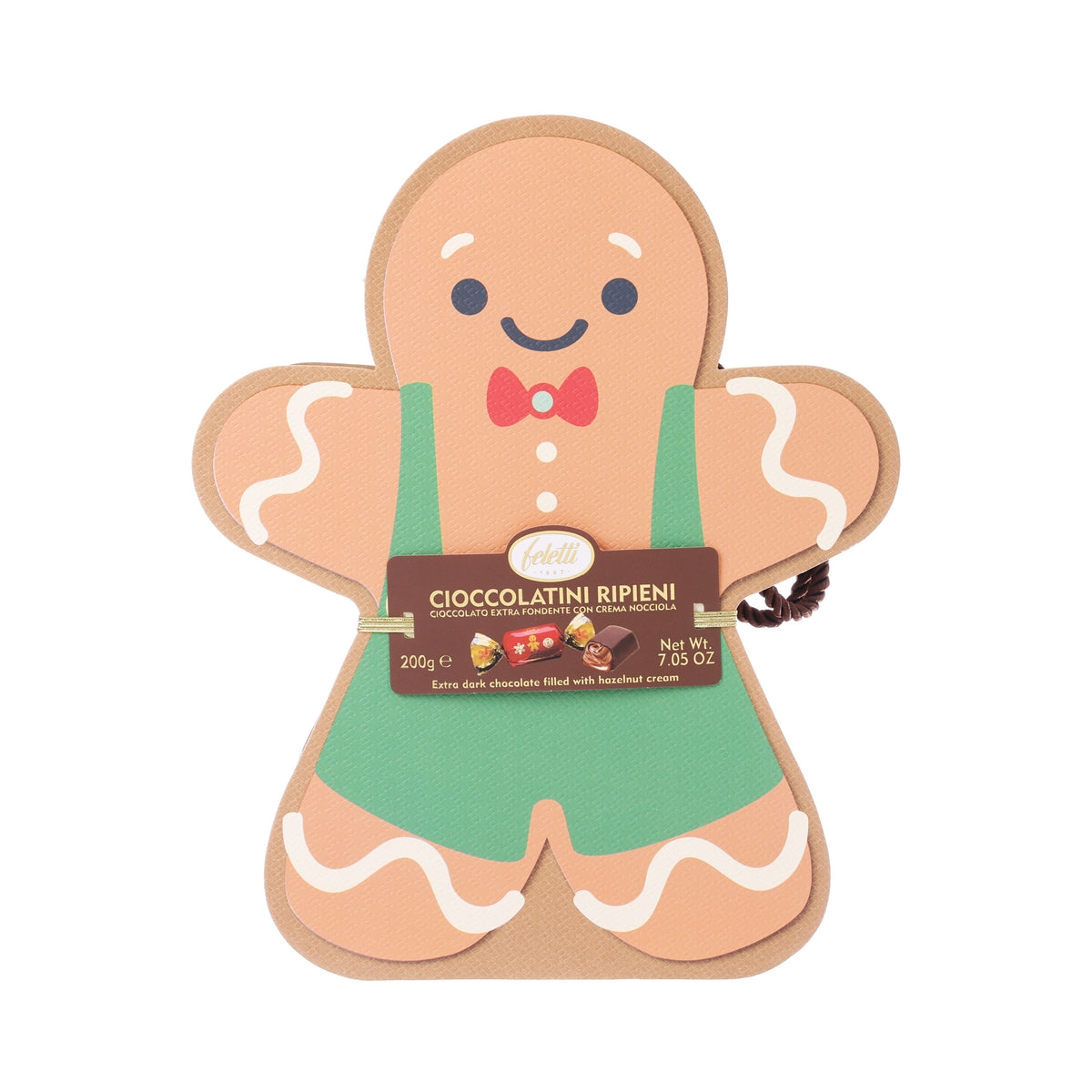 FELETTI Gingerbread Gift Box with Hazelnut Cream Filled Dark Chocolates (200g)