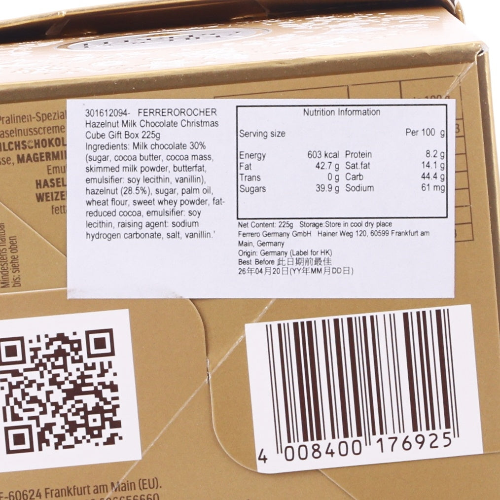 FERREROROCHER Hazelnut Milk Chocolate Christmas Cube Gift Box (225g)