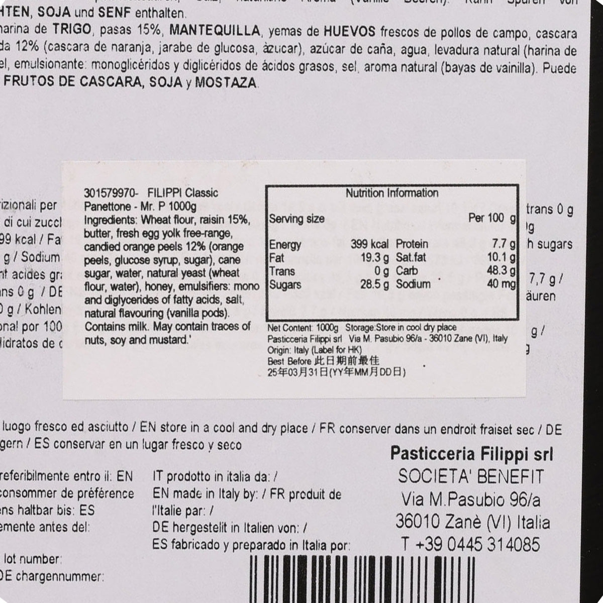 FILIPPI Classic Panettone - Mr. P  (1000g)
