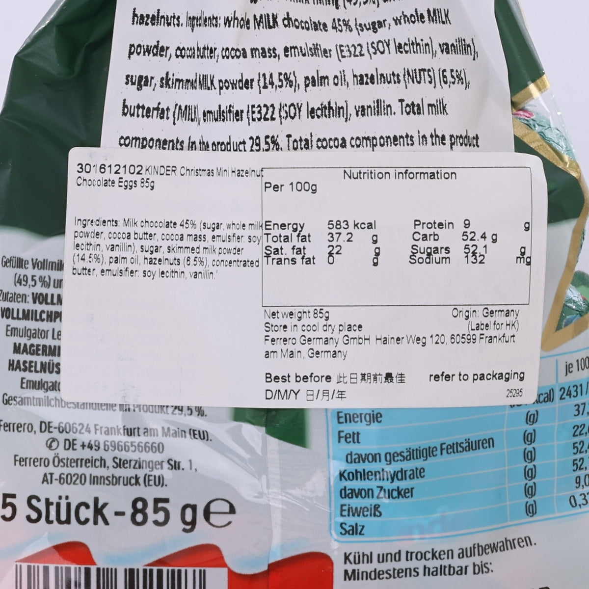 KINDER Christmas Mini Hazelnut Chocolate Eggs (85g)