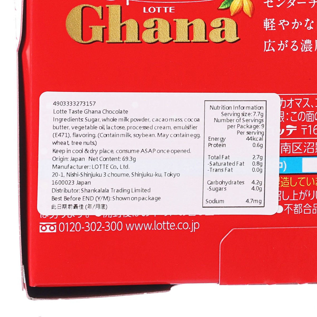 LOTTE Large Ghana Chocolate (9 x 7.7g)