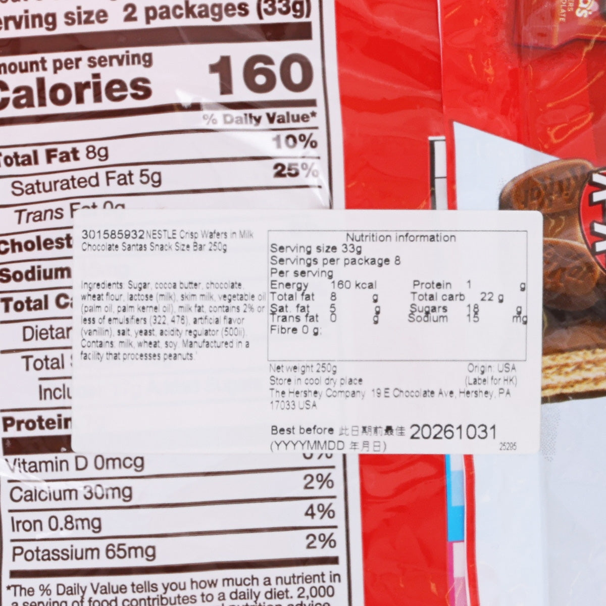 NESTLE Crisp Wafers in Milk Chocolate Santas Snack Size Bar  (250g)