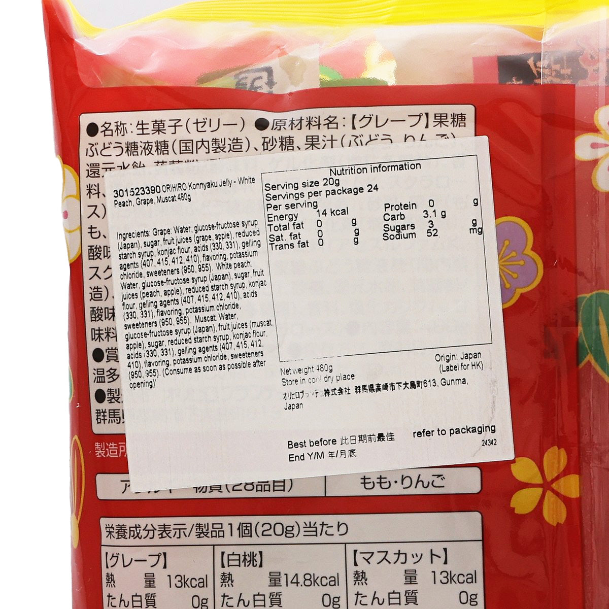 ORIHIRO Konnyaku Jelly - White Peach, Grape, Muscat  (480g)
