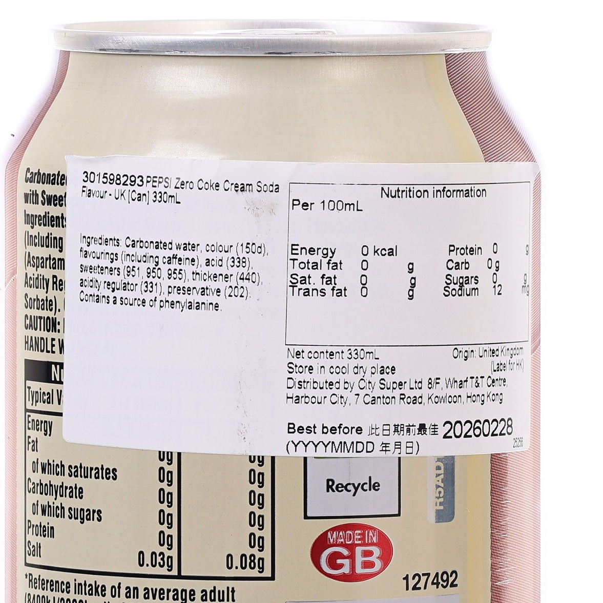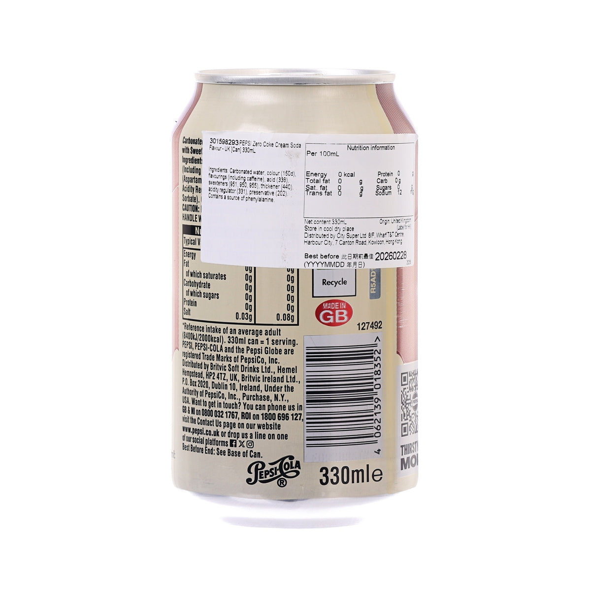PEPSI Zero Coke Cream Soda Flavour - UK [Can] (330mL)