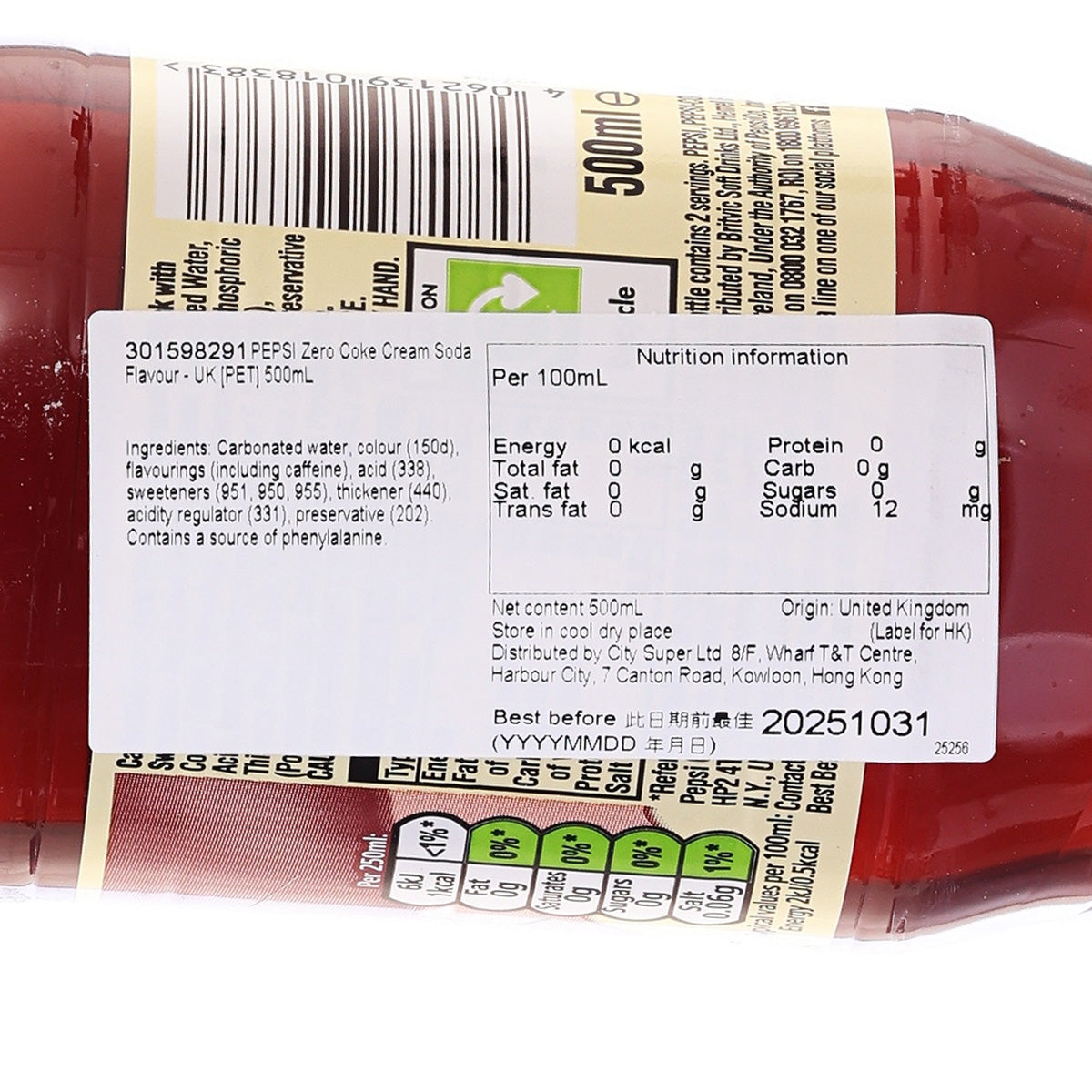PEPSI Zero Coke Cream Soda Flavour - UK [PET]  (500mL)