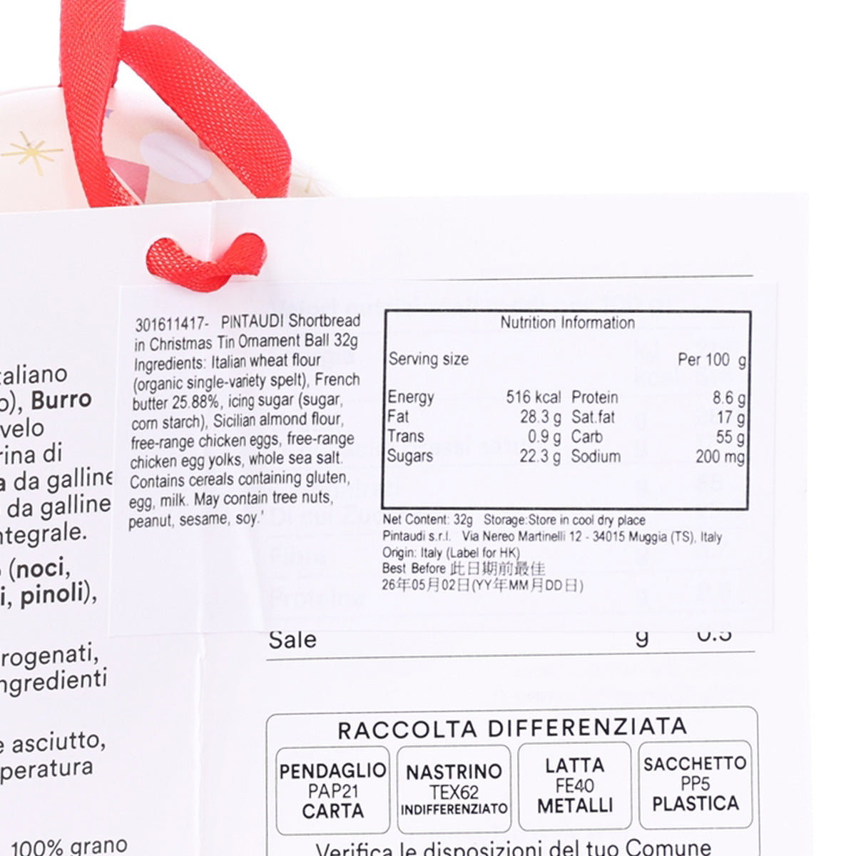 PINTAUDI Shortbread in Christmas Tin Ornament Ball (32g)