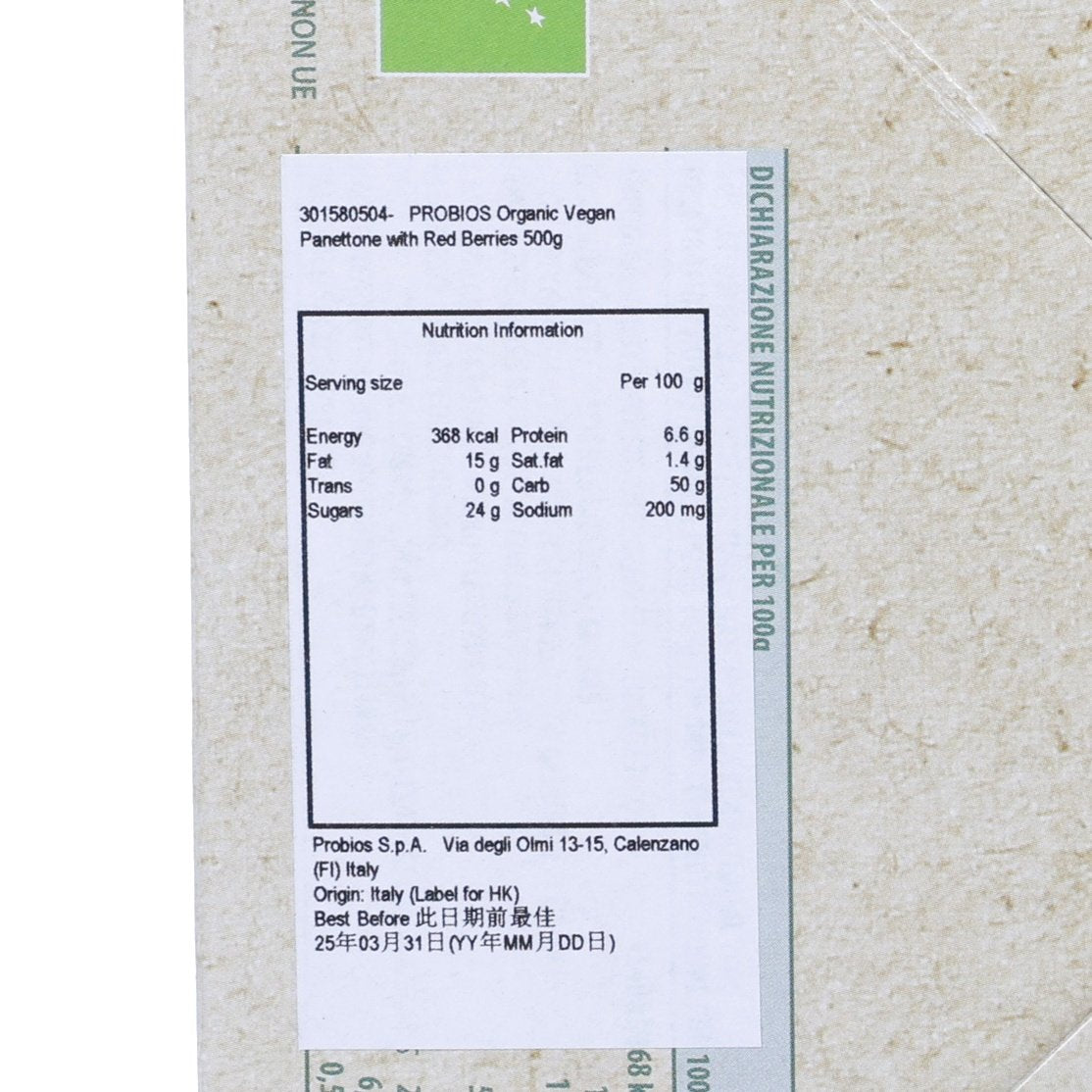 PROBIOS Organic Vegan Panettone with Red Berries  (500g)