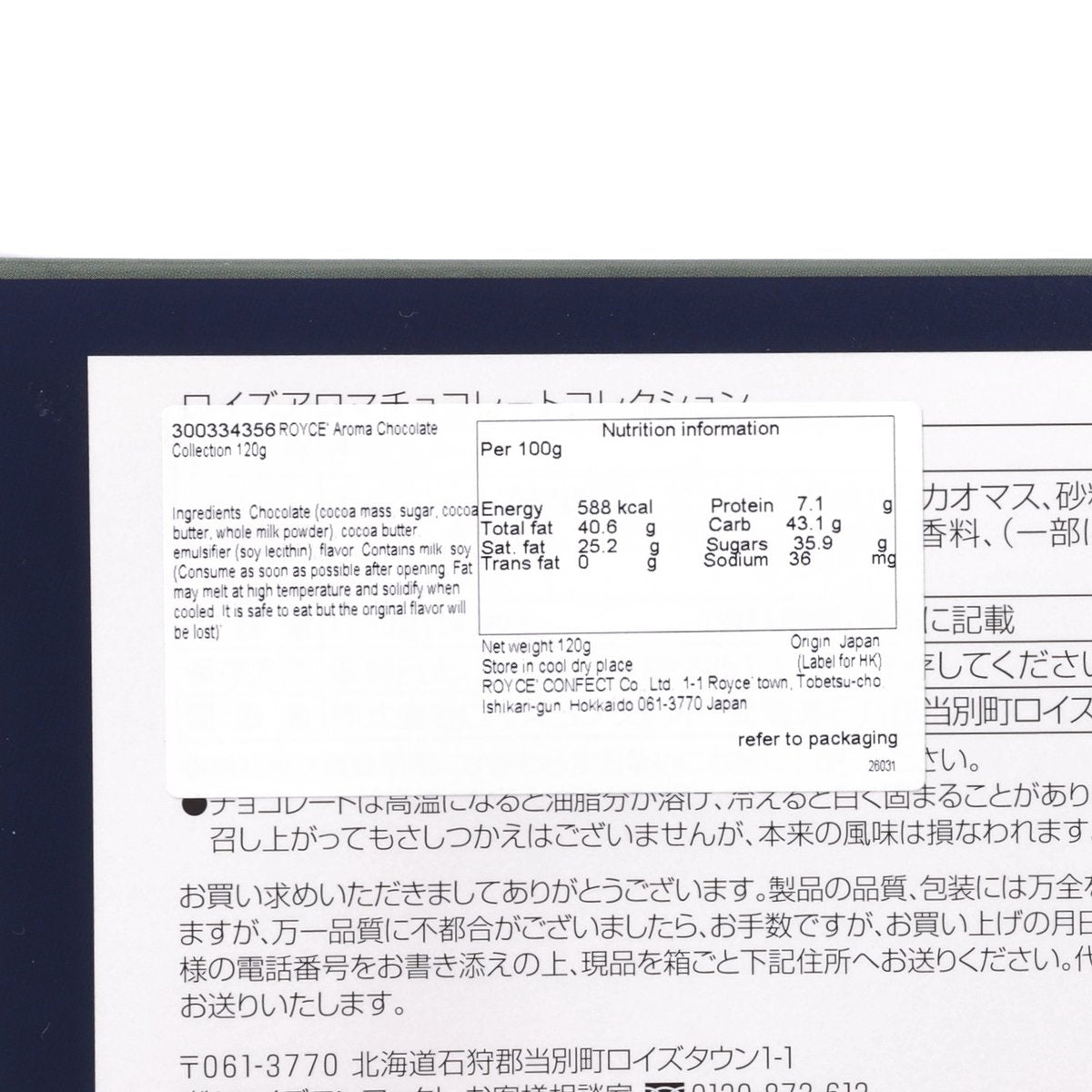Founded in Sapporo in 1983, ROYCE' carefully selects cocoa beans from all over the world, brings out the charm of each cocoa bean to the fullest, to create a wide range of chocolate with unique flavour. A selection of 8 carefully sourced premium chocolates placed in an elegant and chic box, perfect for gifting, also ideal for chocolate enthusiasts to savour a variety of flavours!