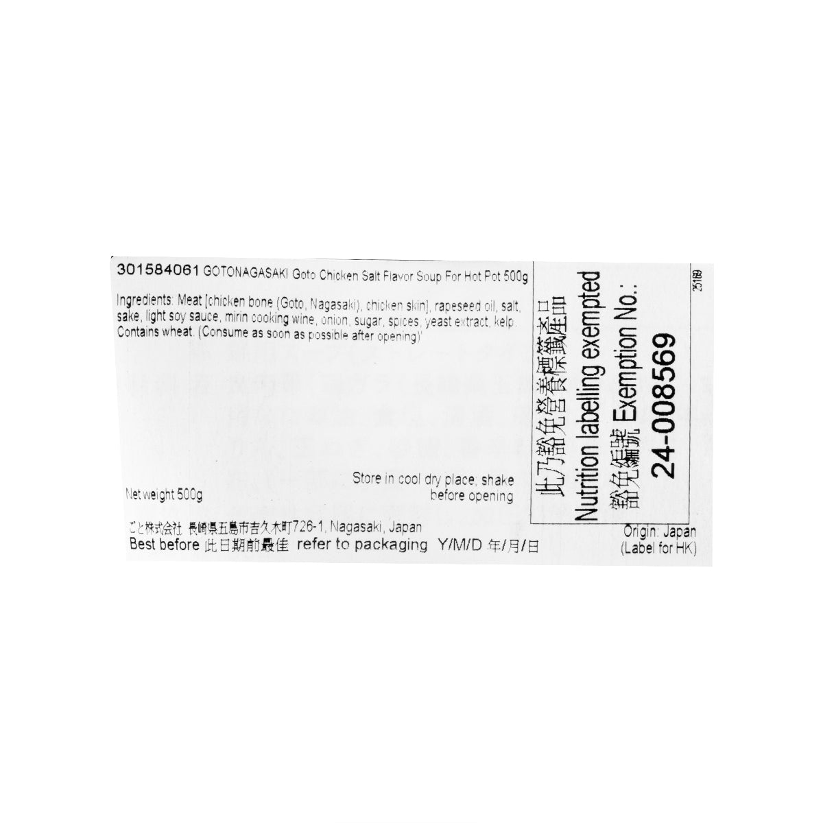 GOTONAGASAKI 五島地鶏鹽味火鍋湯 (500g)