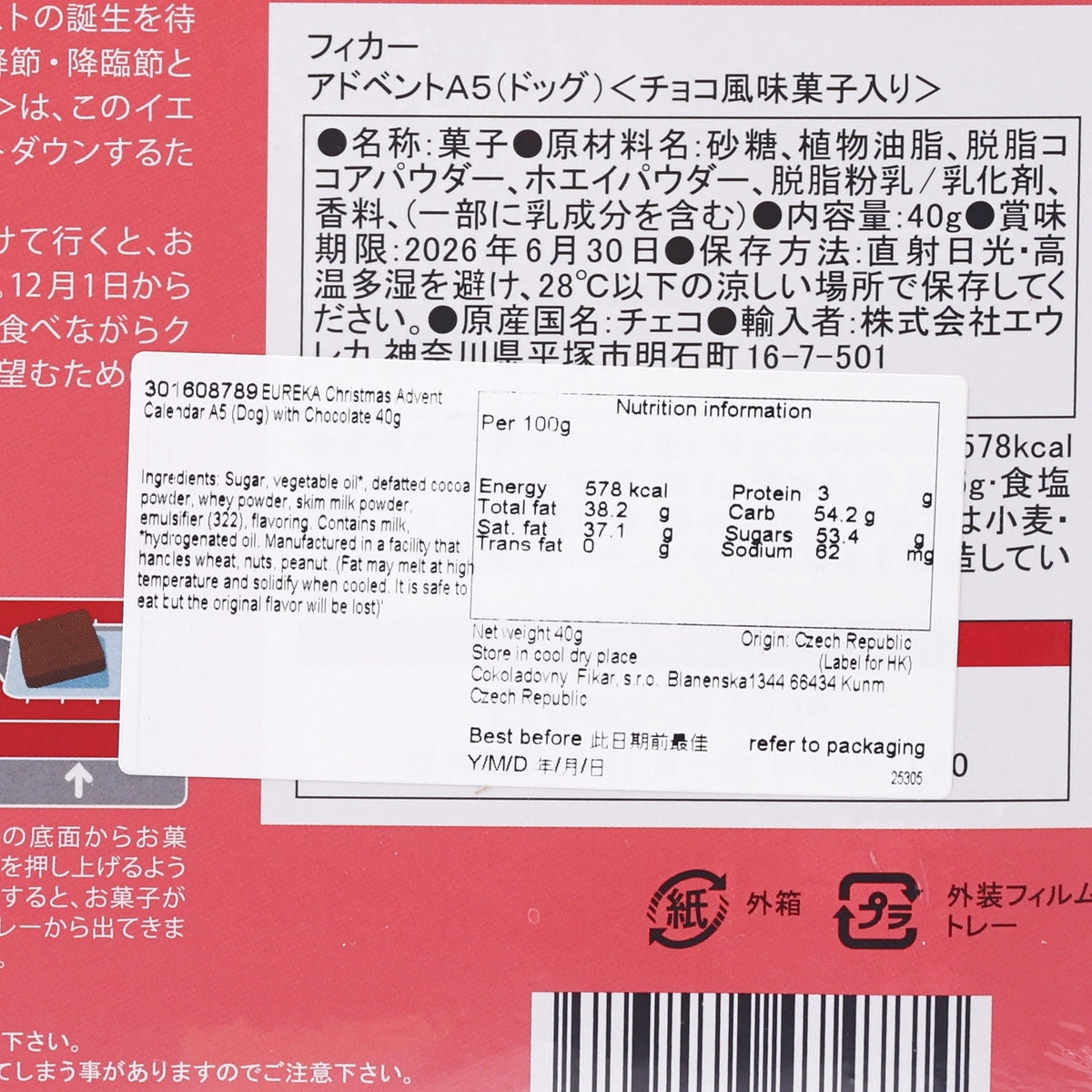 EUREKA 聖誕倒數月曆 A5 小狗 附朱古力 (40g)
