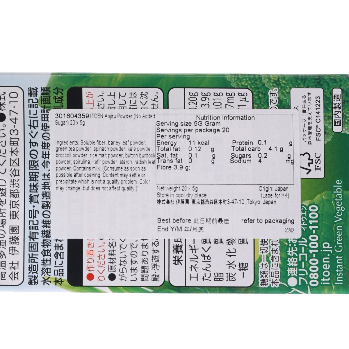 伊藤園 每日一杯之青汁 (無添加糖) (20 x 5g)