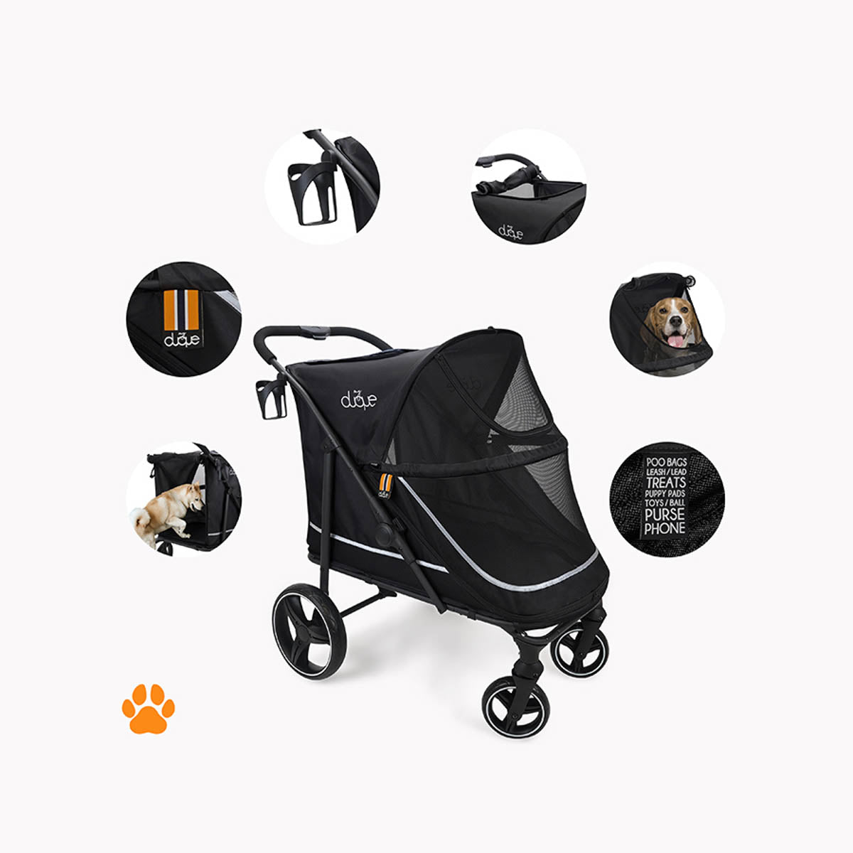- 推車的前後面板均採用透氣性極佳的網狀材料製成,確保良好的空氣流通和全方位視野。