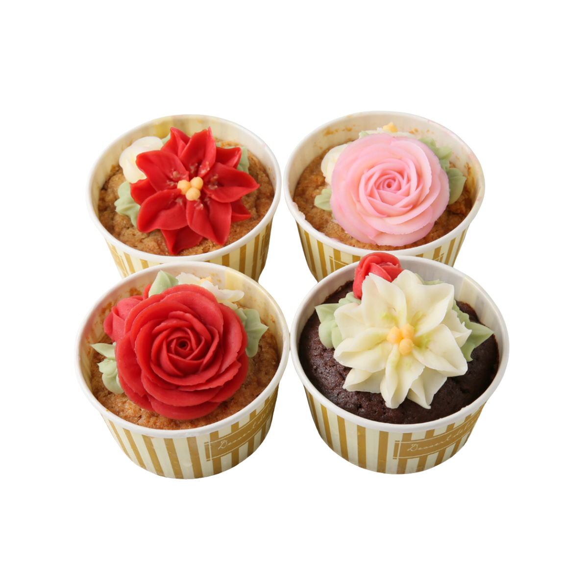 綻放如花般笑容的「可食用花朵杯子蛋糕」。根據季節與節慶,還有不同顏色的玫瑰花款式。夏季更推出向日葵與繡球花造型。