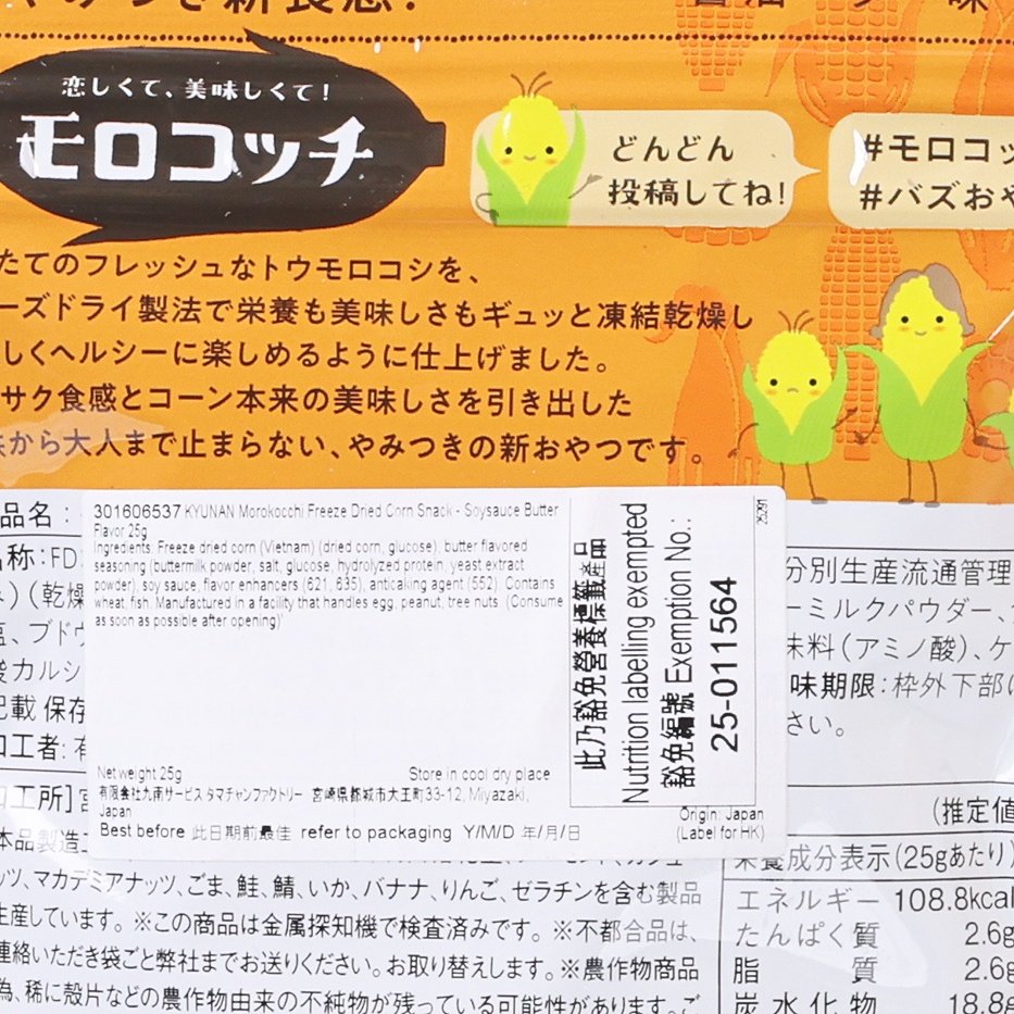 KYUNAN Morokocchi 凍乾粟米粒 - 醬油牛油味 (25g)