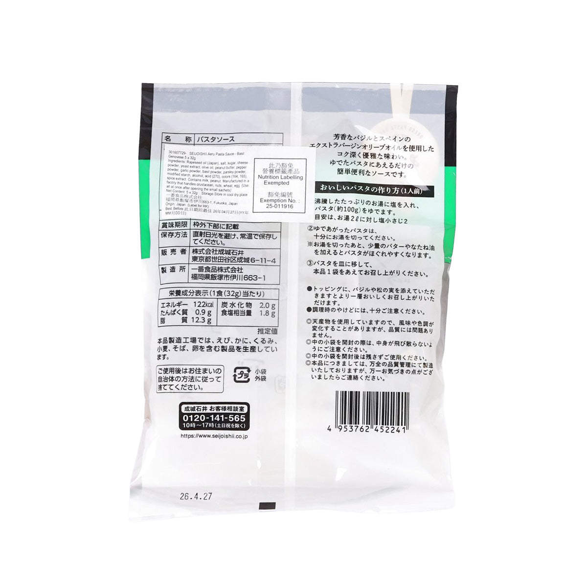 成城石井 羅勒芝士意粉醬 (5 x 32g)