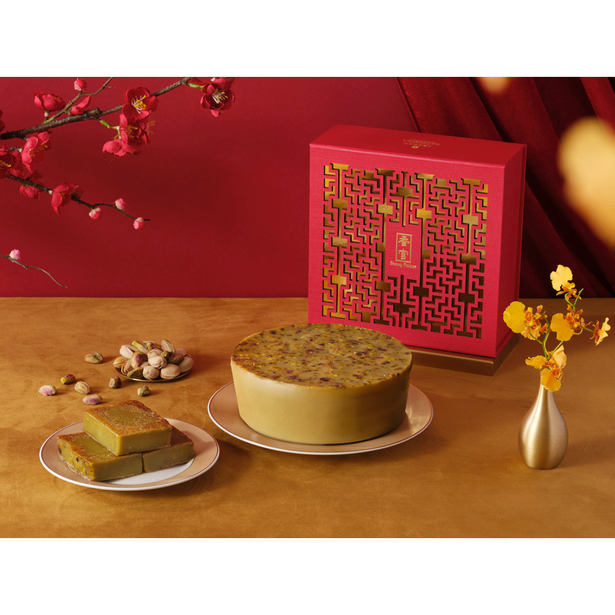 - 開心果年糕結合了傳統的年糕口感,並帶有開心果的香濃味道,讓您感受到濃厚的節慶氣氛。