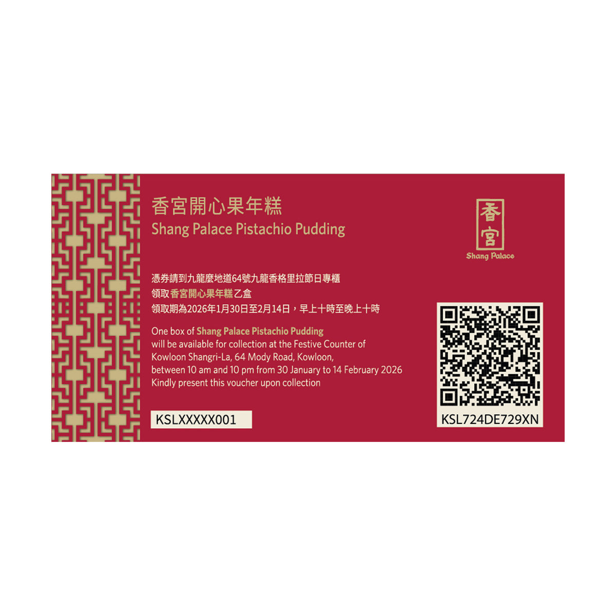 - 九龍香格里拉有權隨時修改此劵之使用條款,而不作另行通知。如有爭議,最終將以九龍香格里拉之決定為準。
