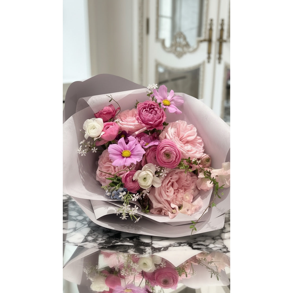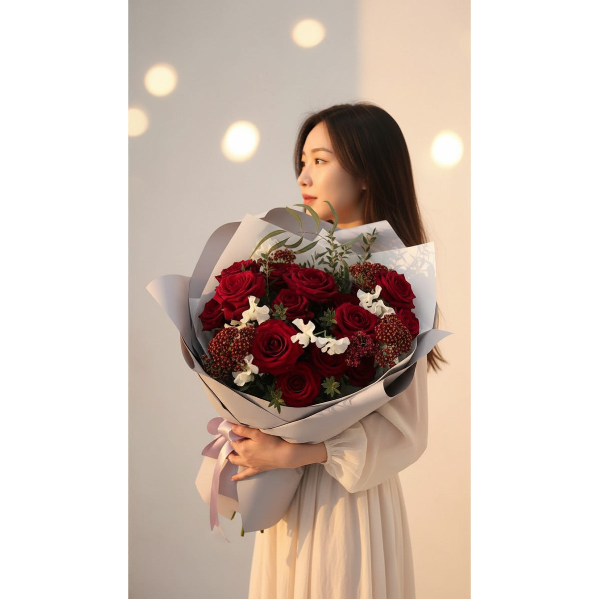 配花風格:由專業花藝師精心搭配6-8款時令襯花,打造浪漫法式庭園風格的玫瑰花束,讓每一份心意更顯獨特。