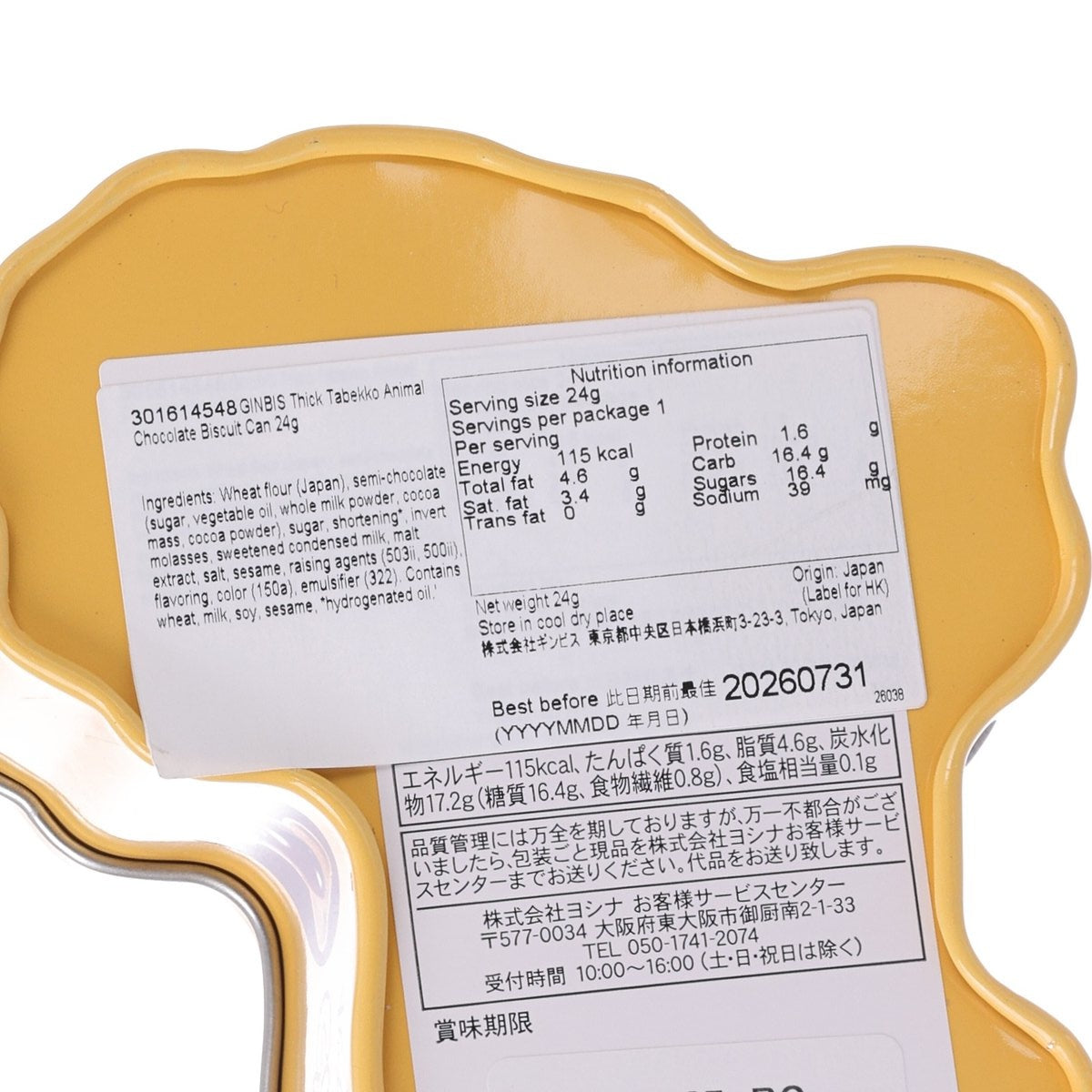 GINBIS 厚燒愉快動物餅乾罐 - 朱古力味 (24g)