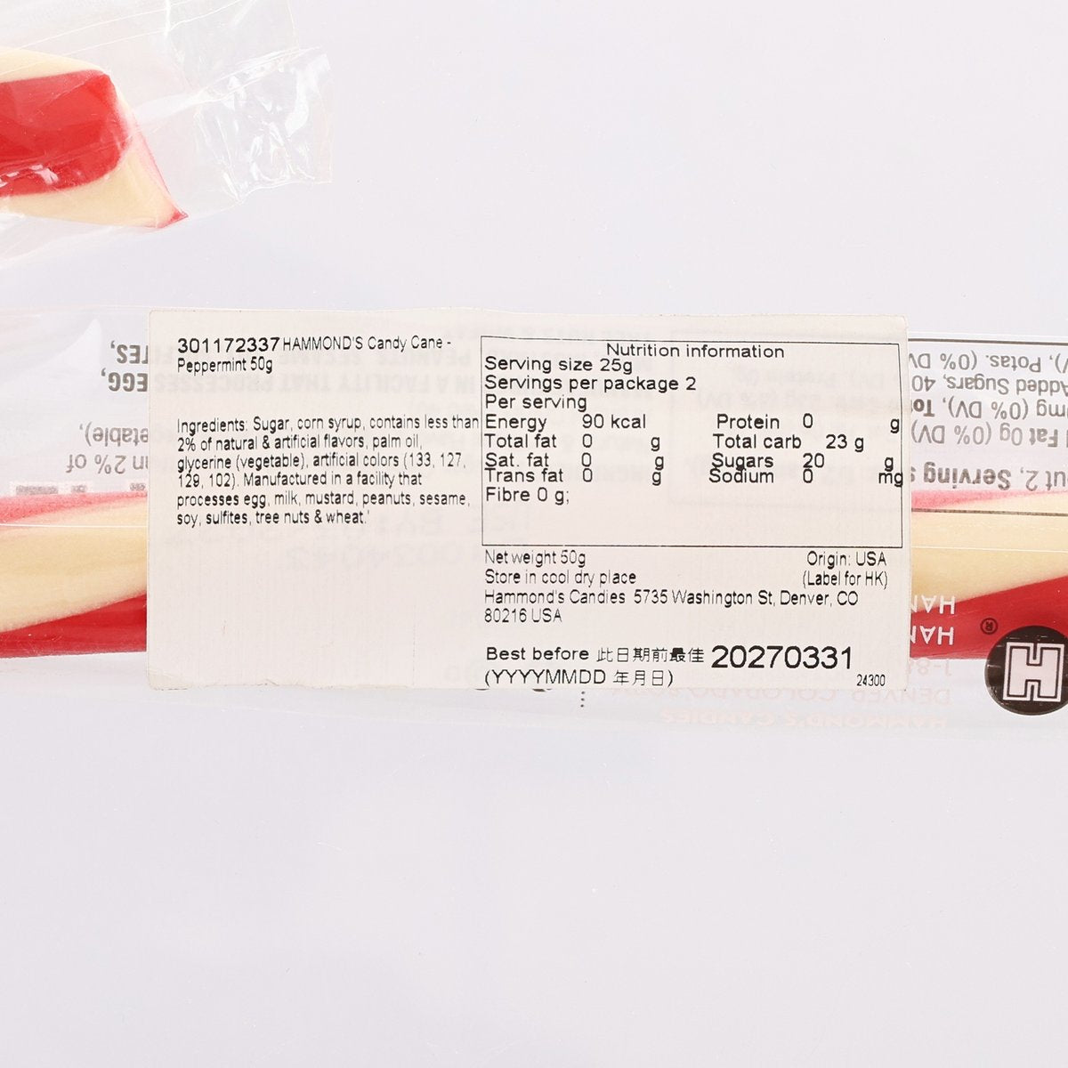 HAMMOND'S 薄荷味拐杖糖 (50g)