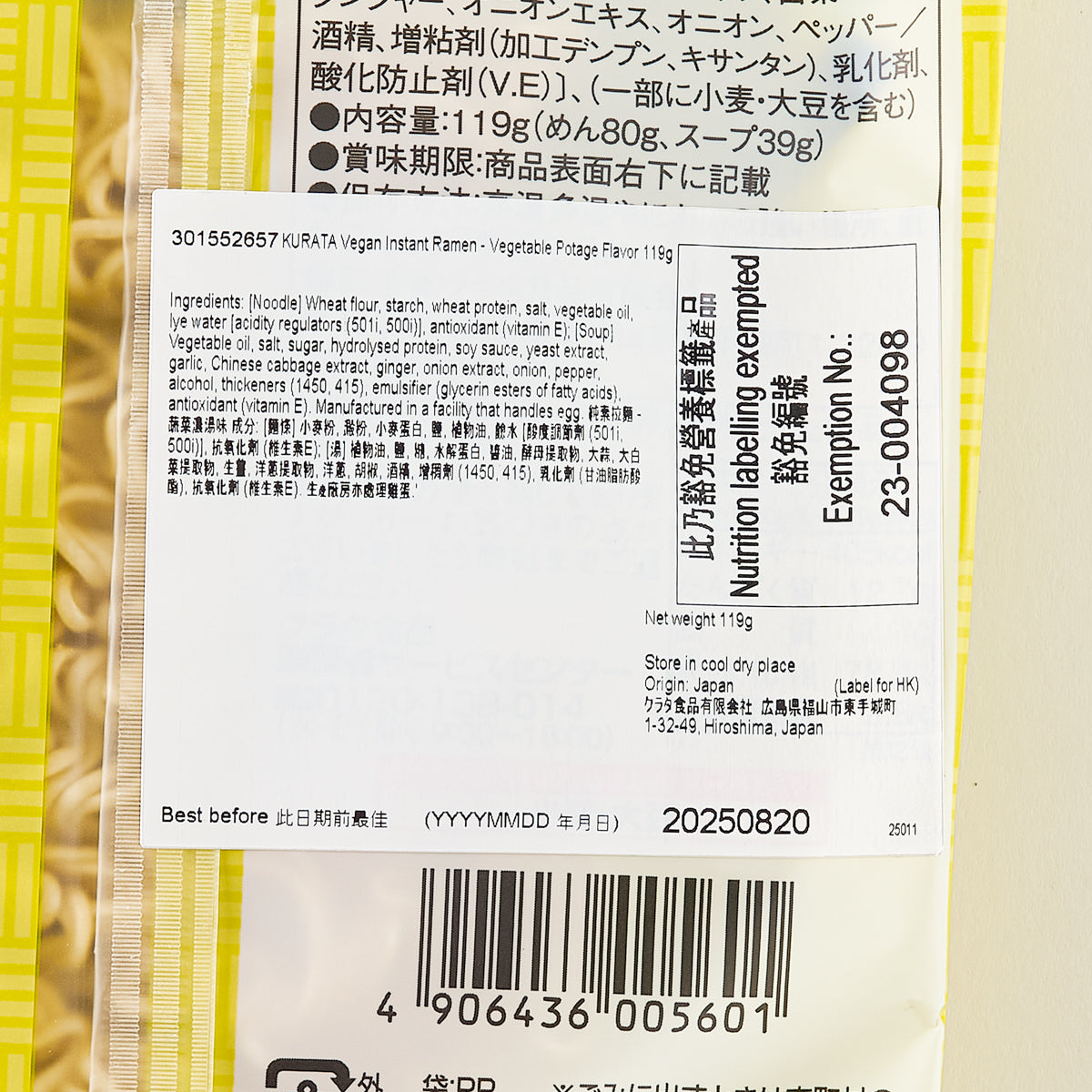 KURATA 純素拉麵 - 蔬菜濃湯味 (119g)